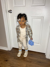 How cute are the colors? Perfect for the winter season. With the thick material this flannel offers, it is perfect for layering or wearing as it! Plaid is trending and if your toddler fashionista is rocking the latest styles this is a MUST HAVE!