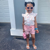 This short set is perfect for spring and summer. Whether you and your mini fashionista are headed to church or the beach, this chic ensemble will definitely fit the occasion!!